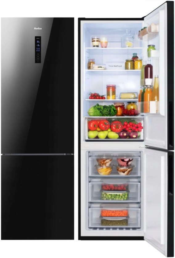 LODÓWKA AMICA FK3356.4GBDF(D) CIEMNE SZKŁO 322 L Total No Frost, Inwerter